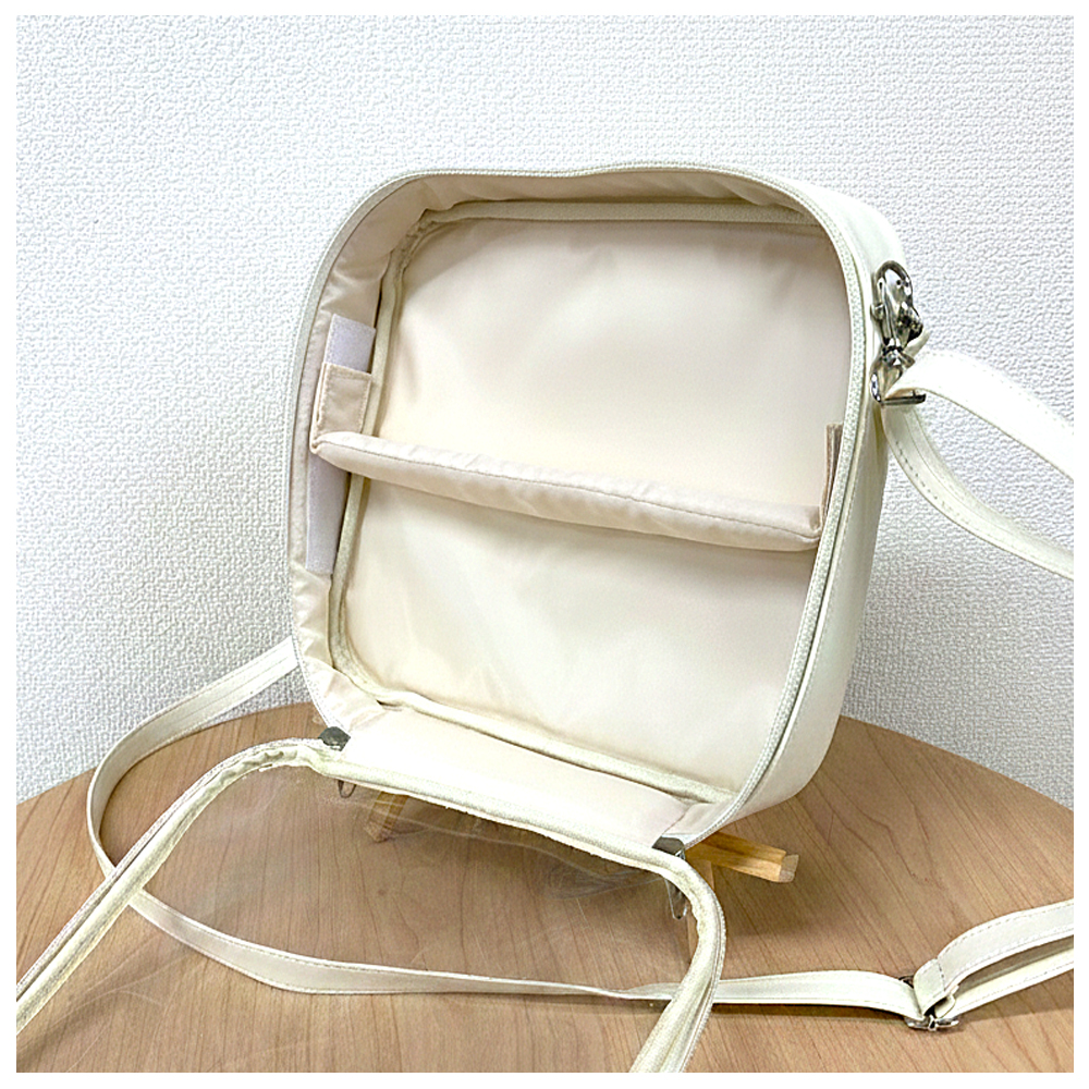 中には可動式の仕切りがあるので、持ち物やぬいぐるみのサイズに合わせて自由にレイアウトできます。