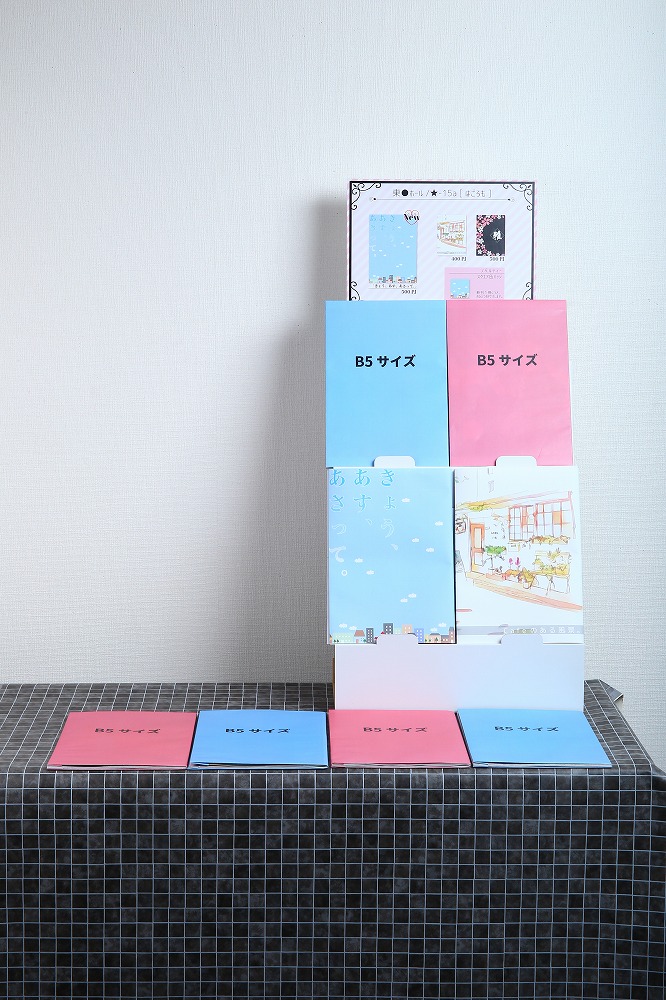 更に即売会で使用される机の長さを考慮して設計されているので、『棚』の前にも平置きが出来ます。頒布物が多くても見やすく展示が可能です。